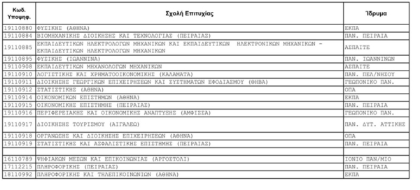 Τμήματα - Σχολές πρόσβασης των υποψηφίων ΕΠΑ.Λ. 2019.