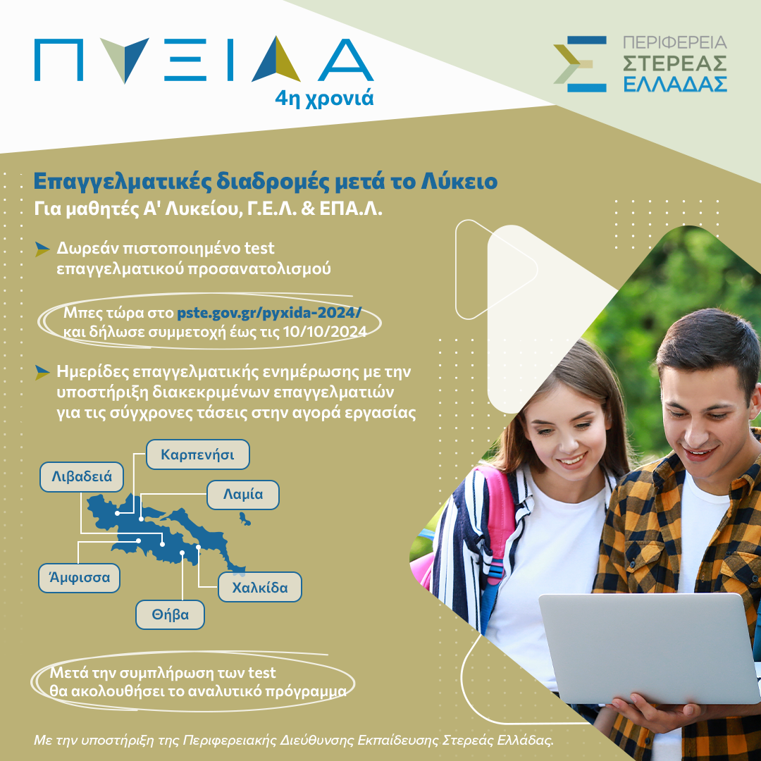Σας ενημερωνουμε πως η υποβολή των ηλεκτρονικών αιτήσεων αρχίζει στις 26/09/2024 15:00. Για την συμπλήρωση της αίτησης οι υποψήφιοι πρέπει απαραίτητα να διαθέτετουν ΑΜΚΑ, ΑΦΜ και διεύθυνση ηλεκτρονικού ταχυδρομείου (e-mail). Για το χρονοδιάγραμμα της Θ΄ Φάσης πατήστε ΕΔΩ, για τον κανονισμό Λειτουργίας Μεταλυκειακού έτους-Τάξης μαθητείας πατήστε ΕΔΩ, για περισσότερες πληροφορίες σχετικά με το πρόγραμμα πατήστε ΕΔΩ.